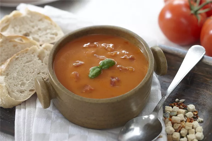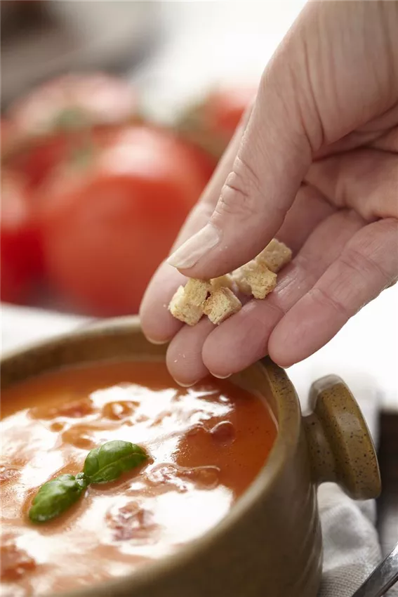Cremige Tomatensuppe mit Croutons