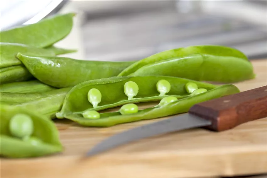 Bohnen & Erbsen. Bohnen (Phaseolus vulgaris) und Erbsen (Pisum sativum) reiften schon in Großmutters Garten und erleben aktuell ein tolles Comeback. Zu Recht, denn sie sind kinderleicht anzubauen und schmecken frisch gepflückt (ohne Lagerzeit) einfach am besten! Man unterscheidet Stangen-, Busch und Dicke Bohnen, Zucker-, Mark- und Schalerbsen. Da es sich um traditionsreiches Gemüse handelt, ist die Sortenvielfalt riesig. Buschbohne ’Prinzessa’ überzeugt durch zarte Konsistenz, während ’Purple Teepee’ mit seiner violetten Färbung auch ein Augenschmaus ist. Die gelbe Wachsbohne ’Golddukat’ ist schmal, fadenlos und bleibt lang zart. Besonders fleischig ist die gelbe Stangenbohne ’Neckargold’. Die Zuckererbsen ’Delikata’ und ’Sugar Bon’ macht ihrem Namen Ehre, während die Markerbse ’Grandera’ bei hohem Ertrag ohne Haltedraht auskommt. Die dunkelviolette Schalerbse ’Blauwschokker’ , auch Kapuzinererbse genannt, ist eine alte Sorte mit rustikalem Charakter. Die Aussaat erfolgt bei Bohnen und Erbsen direkt ins Beet; die meisten Sorten benötigen ein Rankgerüst – das kann auch der Maschendrahtzaun zum Nachbarn sein.
