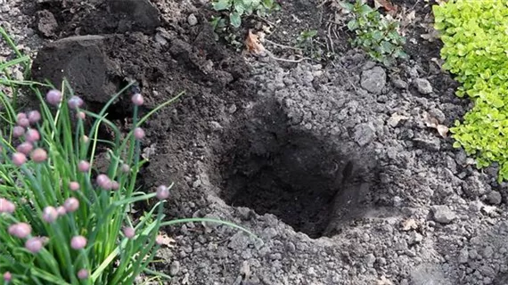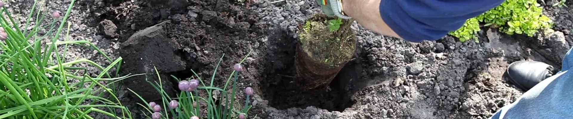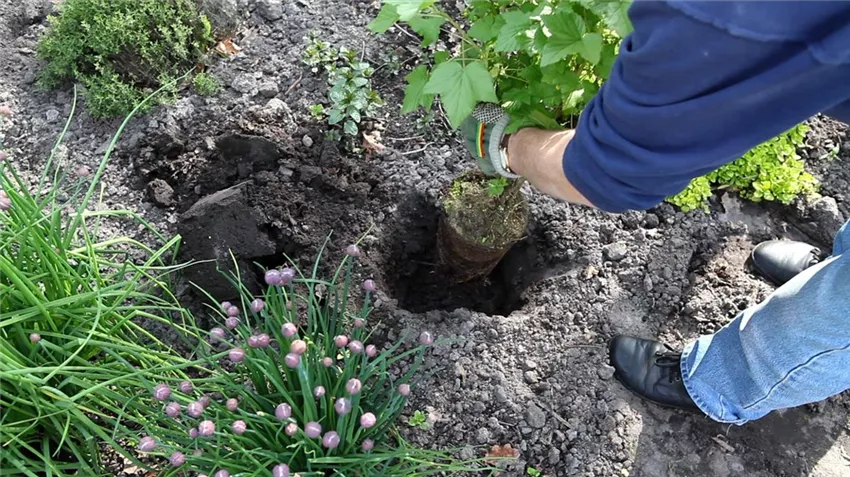 Heben Sie zunächst eine Pflanzgrube aus, die etwa doppelt so breit und so tief ist wie der Wurzelballen der Pflanze.
