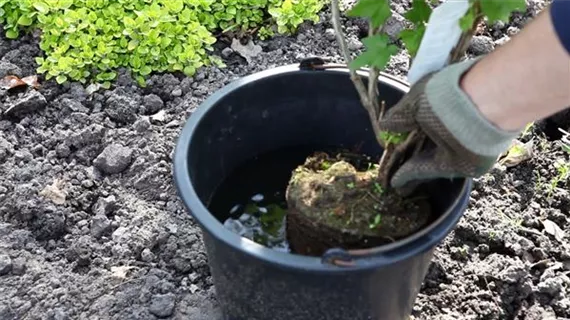 Um den Wurzelballen gleich mit viel Feuchtigkeit zu versorgen, tauchen Sie ihn vor dem Einpflanzen ins Wasser. Warten Sie solange bis keine Luftblasen mehr im Wasser aufsteigen, denn erst dann hat sich die Erde ausreichend vollgesaugt.