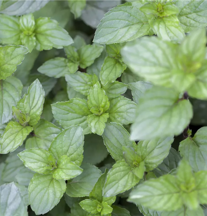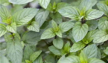 Zum Verzehr geeignet. Die grün-braunen, gezähnten Blätter sind eiförmig und überzeugen mit erfrischendem, minzigem Geschmack.