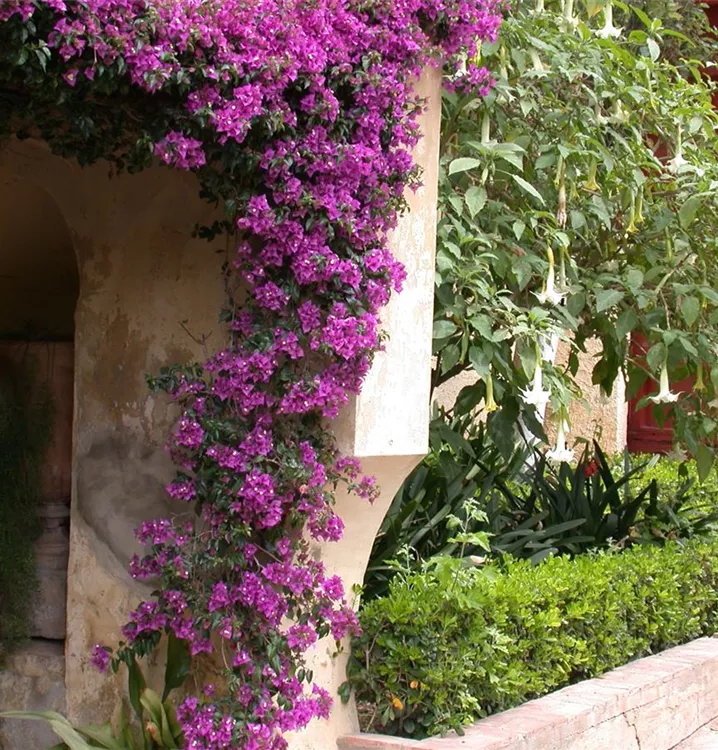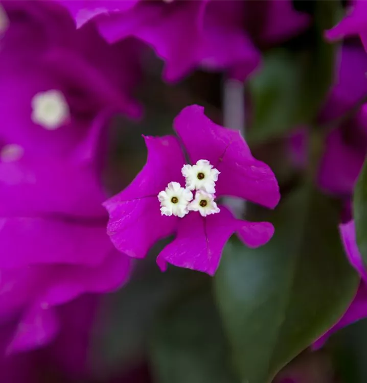 Die Drillingsblume (Bougainvillea) ist eine sehr beliebte Kübelpflanze. Ihre dekorativen Blüten sind sternförmig und erscheinen von Juli bis September. Verwenden Sie bevorzugt die spezielle Kübelpflanzenerde, denn sie verdichtet sich über längere Zeit nicht.