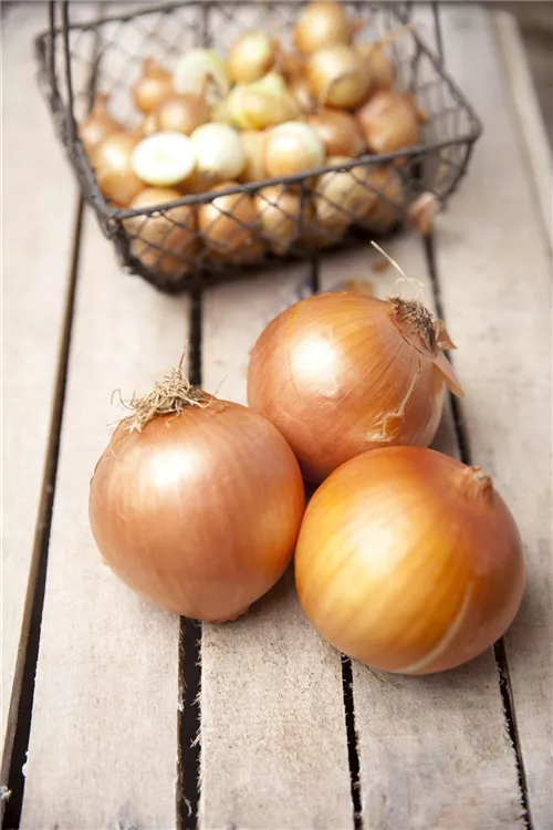 Die Zwiebeln haben einen würzigen Geschmack. Reifezeit ab Juli.
