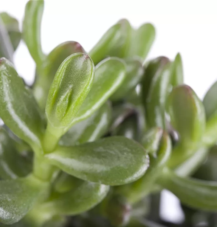 Der Geldbaum (Crassula ovata) besitzt dickfleischige Blätter. Diese aufrechte Pflanze gedeiht am besten an einem sonnigen Standort.