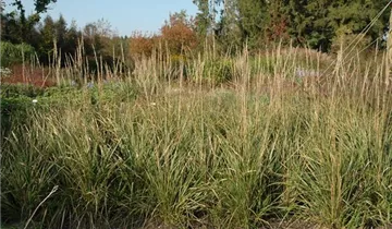 Das Garten-Reitgras 'Karl Foerster' (Calamagrostis x acutiflora) ist mit seiner mittelgrünen Blattfärbung ein dekoratives Gestaltungselement im Garten, welches sich an einem sonnigen Standort mit einem möglichst durchlässigen, lockeren, nährstoffreichen, sandigen Boden am wohlsten fühlt. Die braunen Blütenwedel schmücken die aufrecht wachsende Pflanze ab Sommer. Bei günstigen Bedingungen erreicht dieses winterharte Gras eine Höhe von ca. 1,5 m und wird bis zu 1 m breit.