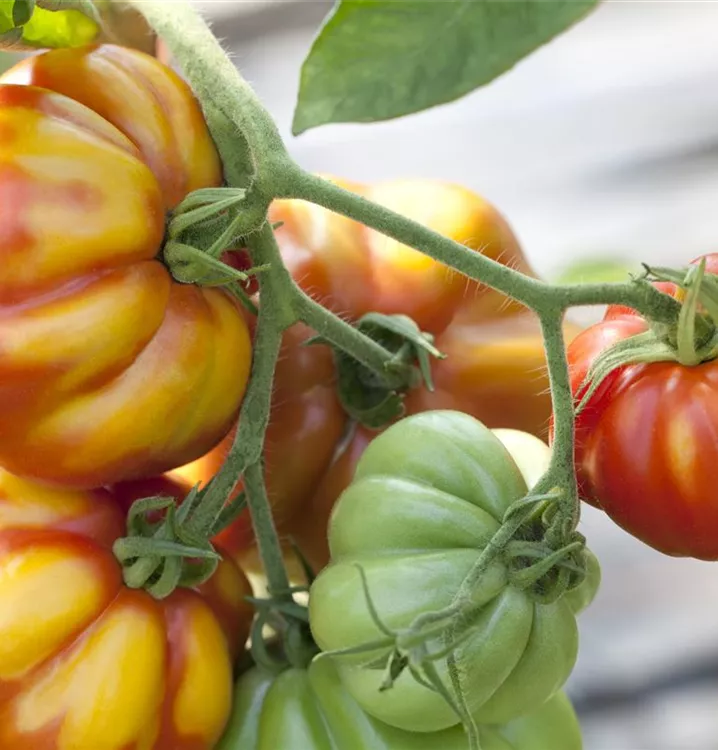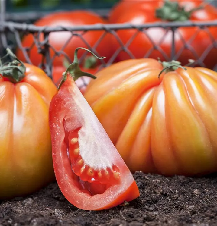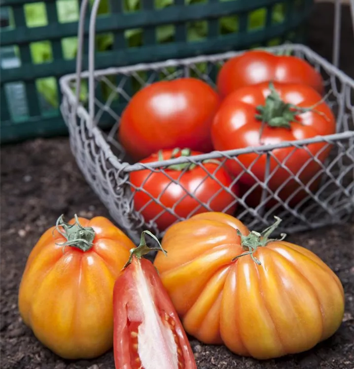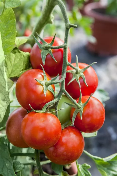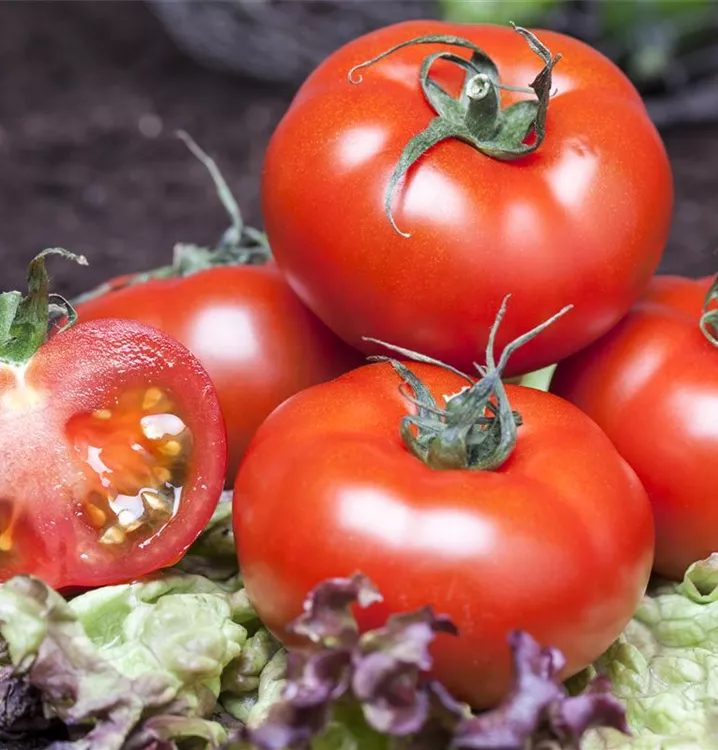 Die Tomate (Solanum lycopersicum) bildet Früchte, die aromatisch schmecken und bereits ab Juli geerntet werden können. Für das optimale Wachstum der Tomate werden ein sonniger Standort und durchlässiger, nährstoffreicher Boden benötigt.