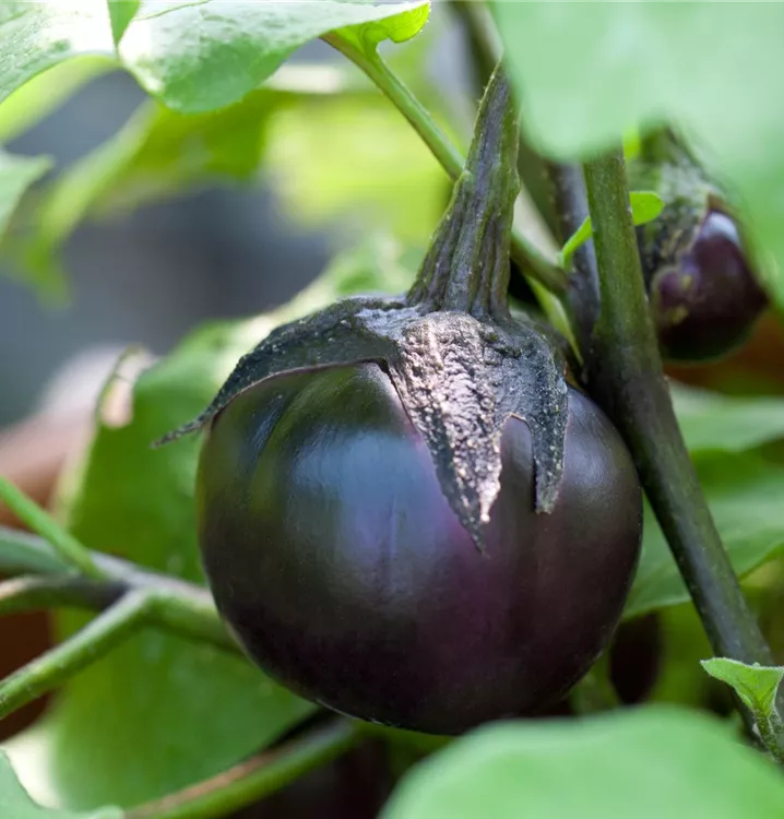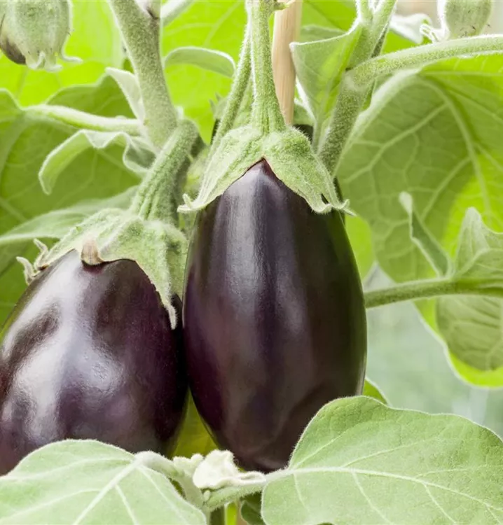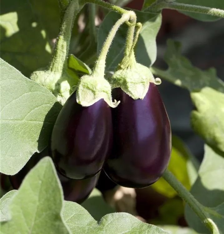 Die Aubergine (Solanum melongena) bildet Früchte, die mild schmecken und bereits ab August geerntet werden können. Für das optimale Wachstum der Aubergine werden ein sonniger Standort und durchlässiger, nährstoffreicher Boden benötigt.
