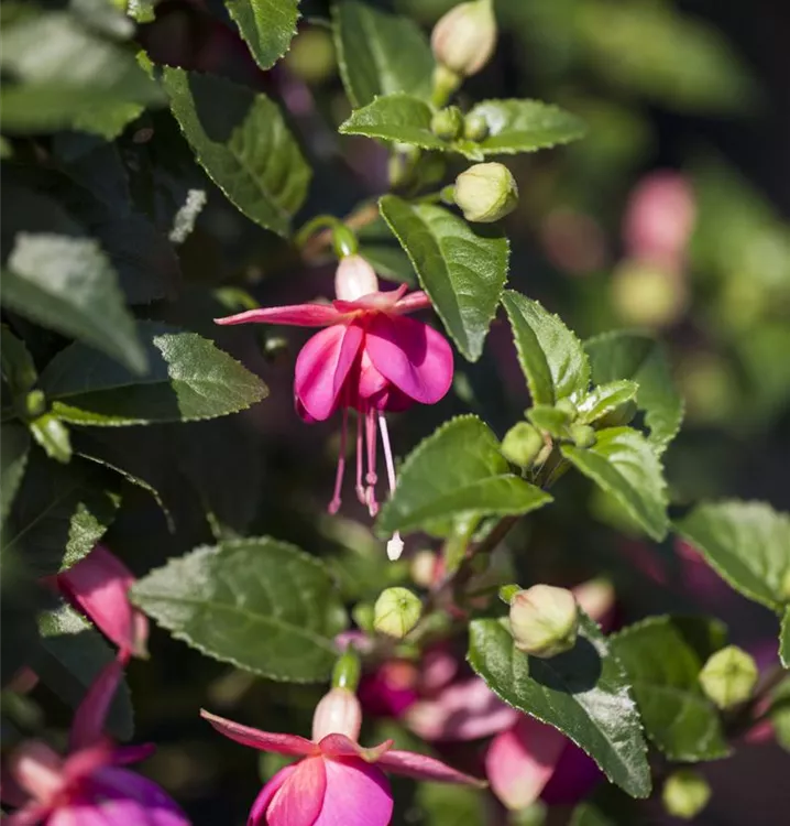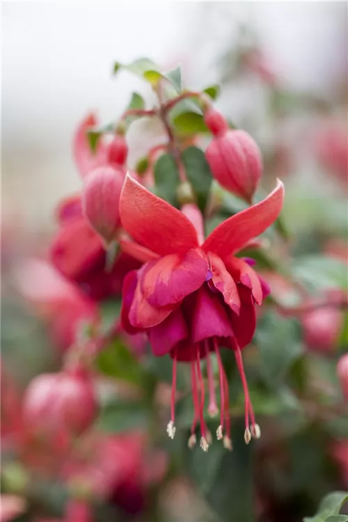 Eine pflegeleichte Pflanze außergewöhnlicher Blütenpracht, die sich in ihrer Farbgebung divers zeigt: Genau diese Merkmale treffen auf die Vertreter der Fuchsien zu. Unterschiedlichste Wuchsformen aufrechter bis überhängender Triebe prädestinieren diese Pflanzen für die verschiedensten Verwendungsmöglichkeiten. Von der Krone bis hin zum Stiel können die hängenden, auffälligen Blüten die unterschiedlichste Farbe tragen.