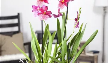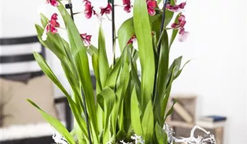 Die Cambria-Orchidee (Cambria) ist eine schöne, in verschiedenen Farben blühende Orchidee. Ihre lippenförmigen Blüten sind sehr dekorativ und erscheinen in Wickeln von Januar bis Dezember. Für das optimale Wachstum sorgen ein heller Standort sowie ein spezielles Orchideen-Substrat.