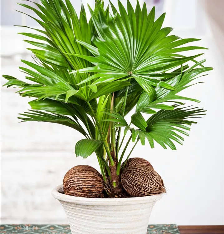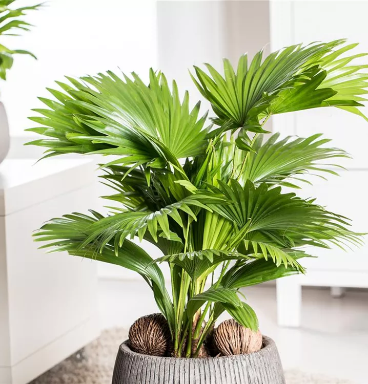 Die Chinesische Livingstonpalme (Livistona chinensis) ist eine sehr beliebte Kübelpflanze. Verwenden Sie bevorzugt die spezielle Kübelpflanzenerde, denn sie verdichtet sich über längere Zeit nicht.