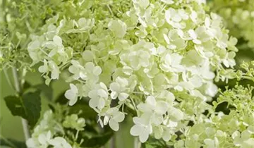 Die weißen Blüten der Rispenhortensie erscheinen in Rispen von Juli bis September. Diese sind angenehm duftend.