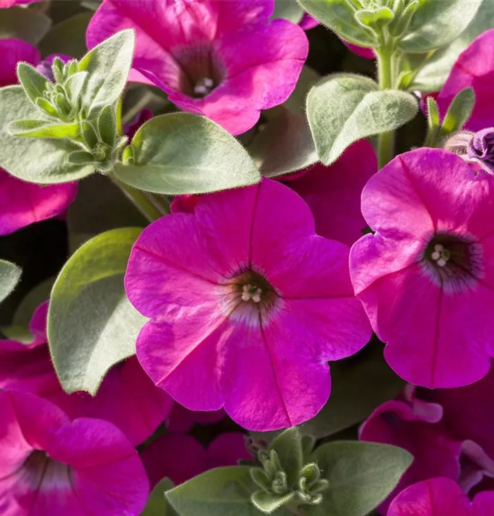 Die Petunie 'Potunia'® (Petunia) ist eine beliebte Pflanze für den Balkon. Die unzähligen Blüten erscheinen, je nach Sorte, in verschiedenen Farben die ganze Saison hindurch. Ein sonniger Standort und ein durchlässiges Substrat werden bevorzugt.