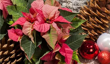 Der Weihnachtsstern (Euphorbia pulcherrima) blüht über Monate hinweg. Je nach Sorte, erscheinen die dekorativen Blüten in den Farben Rot, Rosa und Weiß. Bevorzugt wird ein sonniger Standort und eine durchlässige Erde.